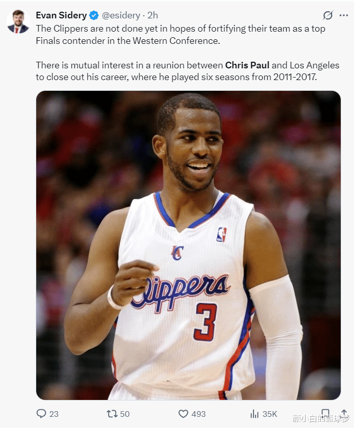 根据《福布斯体育》记者埃文-斯迪瑞的报道,快船在签下比尔后也没有放弃对40岁老将克里斯-保罗的追逐,他们希望继续提升球队实力,以便于在西部成为总冠军争夺者,保罗在快船打了6个赛季,他也希望在洛杉矶延续生涯+退役。