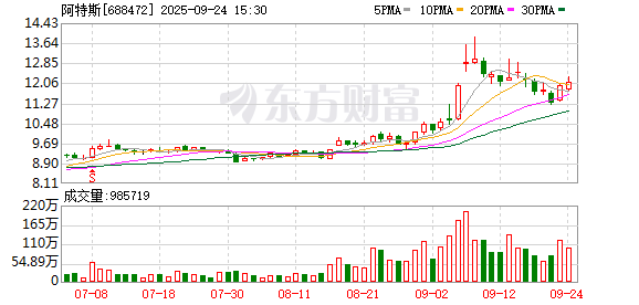 证券时报·数据宝统计显示,阿特斯今日收盘价为12.11元,上涨1.17%,日换手率为7.08%,成交额为11.90亿元,全天主力资金净流入3727.68万元,近5日该股累计下跌0.57%,近5日资金合计净流入2609.35万元。